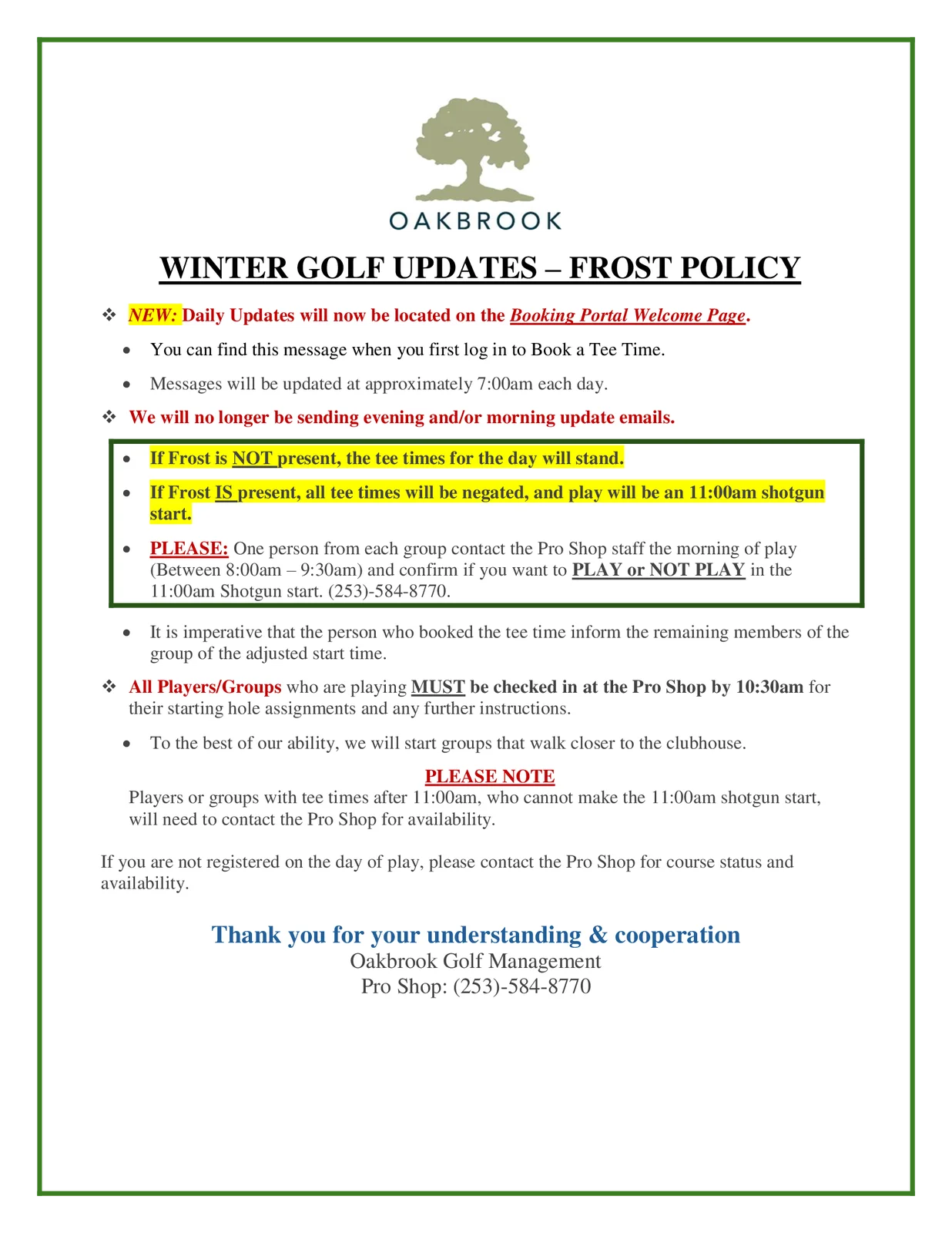 Oakbrook Hours